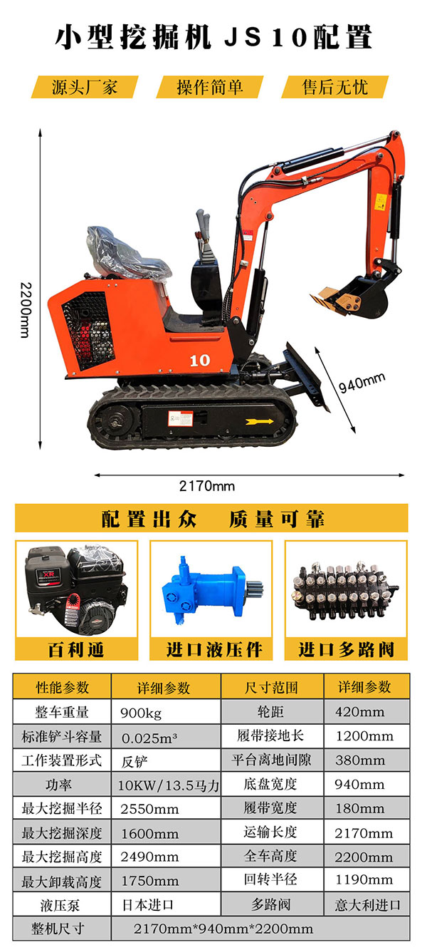 小型挖掘機JS10配置